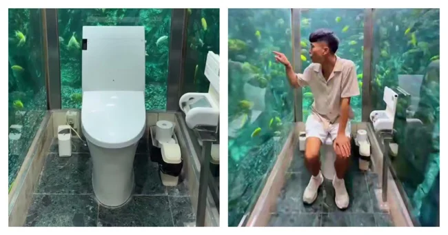 У Японії, країні, де незвичайні ідеї та інновації зустрічаються щокроку, з'явилася чергова унікальна пам'ятка. Одне кафе стало відомим не завдяки вишуканим стравам або стильному інтер'єру, а через туалет, який буквально вбудований в гігантський акваріум. Сотні тропічних рибок плавають довкола, поки ви займаєтеся своїми справами. І так, багато хто приходить сюди саме заради цього досвіду.