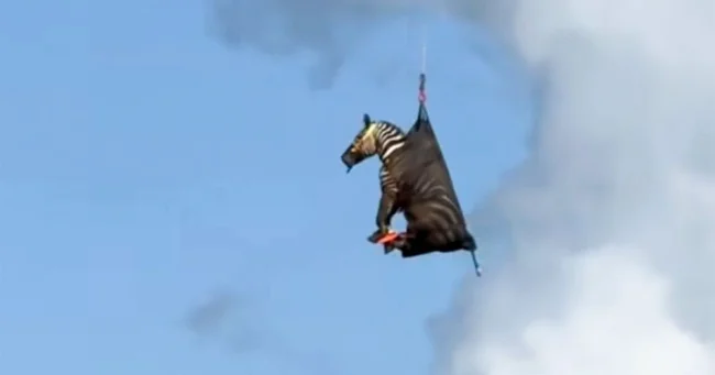 Тиждень у всьому штаті Теннессі шукали зебру. На відеозаписах відображено момент, як втікача піднімають у повітря на вертольоті.