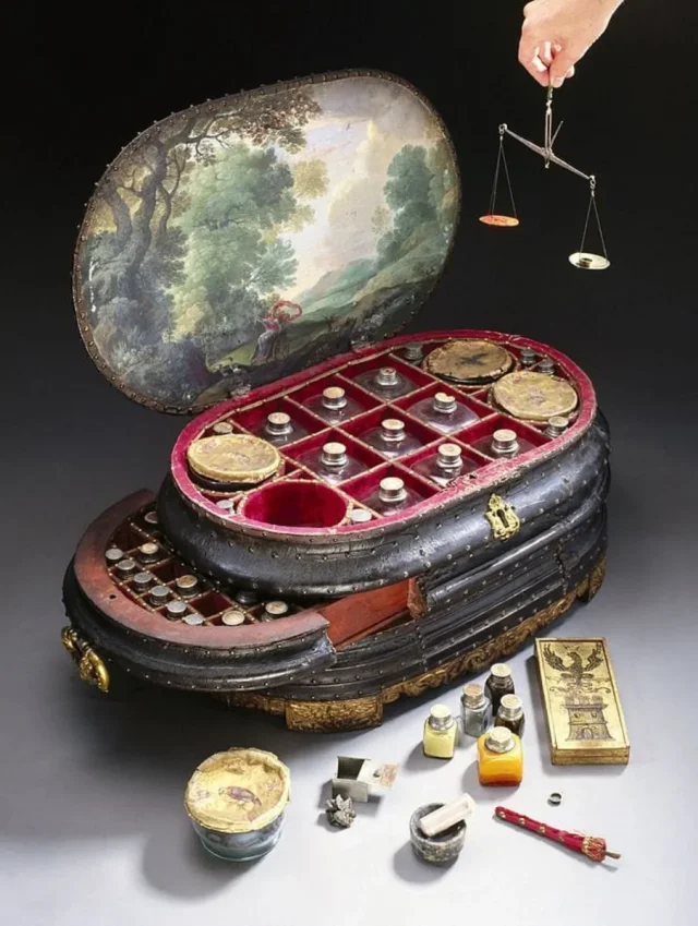 Компактна середньовічна аптечка: 126 флаконів з ліками, 1560-і.