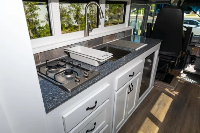 11 липня на аукціон Mecum у штаті Флорида виставлять автобудинок, зроблений зі шкільного автобуса популярної моделі Freightliner FS65. Кемпер має все необхідне для постійного проживання як мінімум двох осіб і продаватиметься в комплекті з електровелосипедом, який кріпиться на його задній частині. Цінових очікувань щодо цього лоту аукціоністи не публікують.