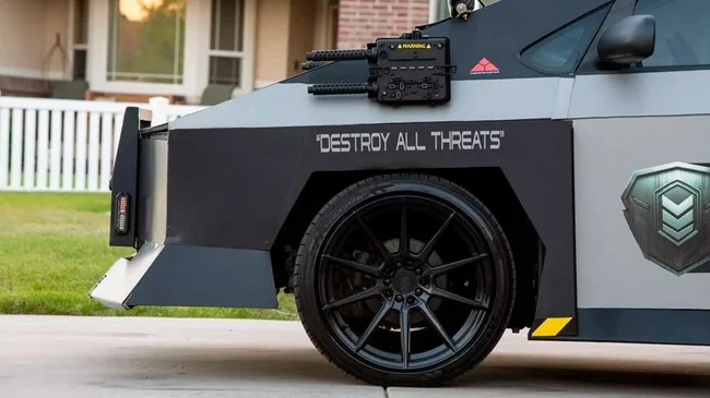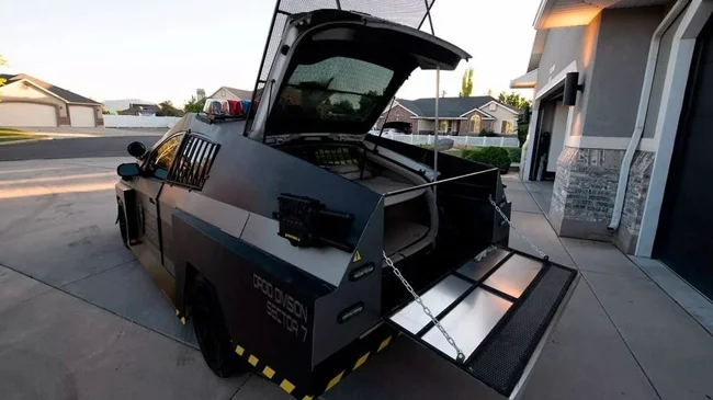 Саморобка отримала власне ім'я - Cybercop, оскільки оформлена в стилістиці патрульного авто і оснащена мигалками на даху, парою прожекторів-шукачів на передніх стійках, а також кулеметами бутафорами по бортах. Але про всяк випадок містяться застережливі написи, що це не поліцейський автомобіль.