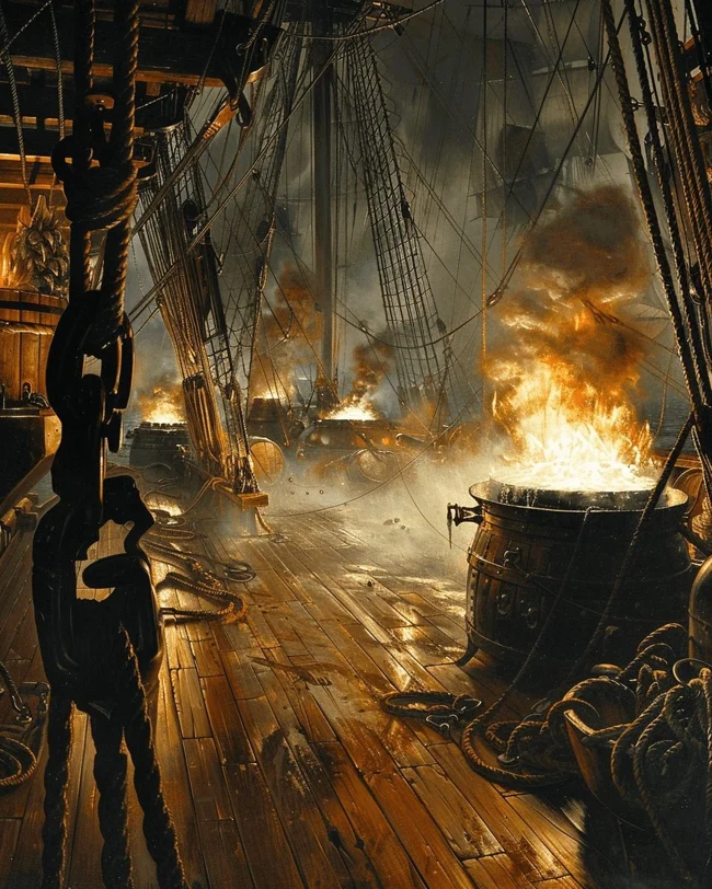 Голландський корабель зробив один точний постріл головним кораблем імперії — Le Louis. Ядро потрапило не в корпус, не в вітрила... а в котел суповий, що стояв на палубі.