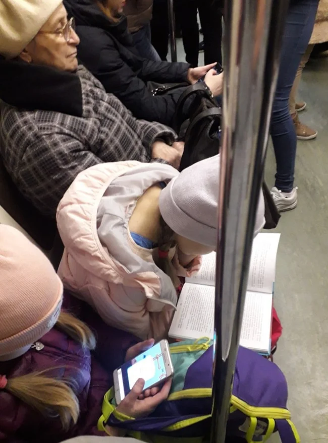 Поки одна дівчинка занурена в книгу, друга віддає перевагу смартфону.