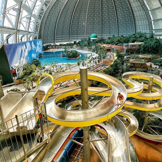 У німецькому Крауснику сталося неймовірне перетворення: гігантський ангар для дирижаблів (один із найбільших у світі) став аквапарком Tropical Islands зі справжнім тропічним кліматом.