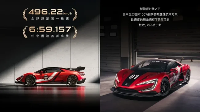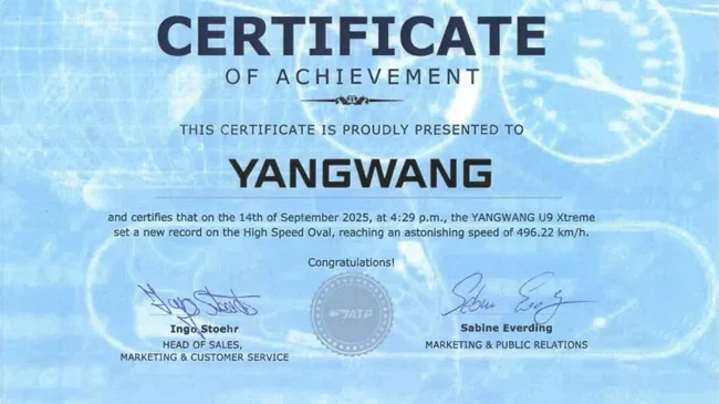 люксова марка Yangwang, що належить компанії BYD, оголосила про чергове досягнення свого електричного гіперкара U9. Купе в новій модифікації Extreme змогло розвинути максимальну швидкість 496,22 км/год, що виробник називає рекордом. Заїзд відбувся на німецькому випробувальному полігоні Automotive Testing Papenburg — там же, де свої швидкісні рекорди ставлять хорвати Rimac Automobili ще тиждень тому, але подробиці про нього, включаючи онборд-відео, з'явилися тільки тепер.