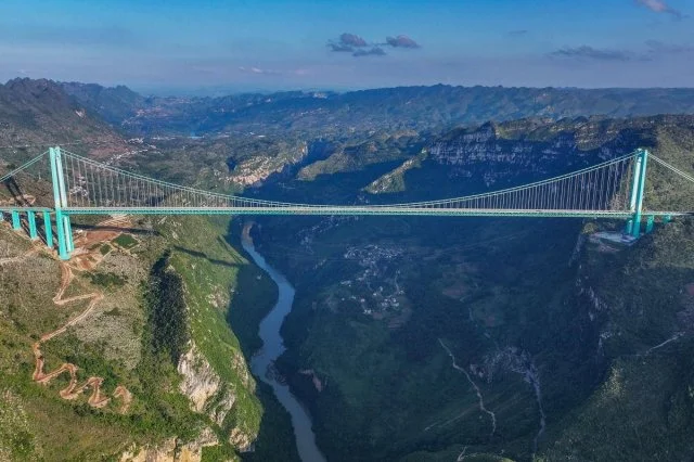 У Китаї офіційно відкрили найвищий у світі міст. Він прокладений через ущелину в провінції Гуйчжоу і піднімається на 625 метрів над річкою Бейпан — вище 200-поверхового хмарочоса. Міст розтягнувся майже на 3 км, а збудували його лише за 3 роки. Для порівняння: він у 9 разів вищий за мост «Золоті ворота» в Сан-Франциско. ![]()