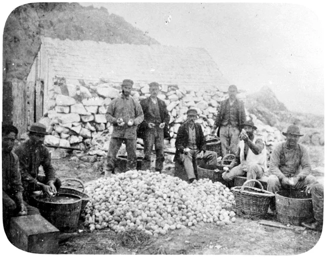 На острови ринули шукачі пригод. Ризикуючи життям, вони дерлися по стрімких скелях, відбиваючись від чайок, щоб зібрати сотні тисяч яєць. Щоб забезпечити свіжість, вони методично знищували всі кладки поспіль, повертаючись назавтра за новими.
