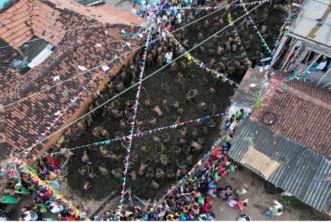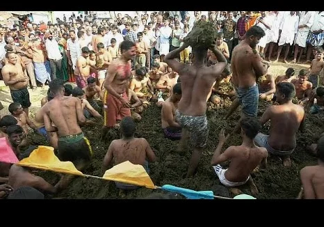 Місцеві жителі вірять, що одне з їхніх божеств, Беєрешвар Свамі, народилося в коров'ячому гною. За день до самої битви організатори обходять усі будинки, де є власна корова, щоб зібрати свіжий «матеріал». На запряжених буйволами підводах весь зібраний гній відвозять до храму, хто проводиться обряд благословення. Коли всі обряди завершено, купи гною викидають на велике поле поряд із поселенням. У день великої битви сміливці повинні з'явитися на полі, голими до пояса.