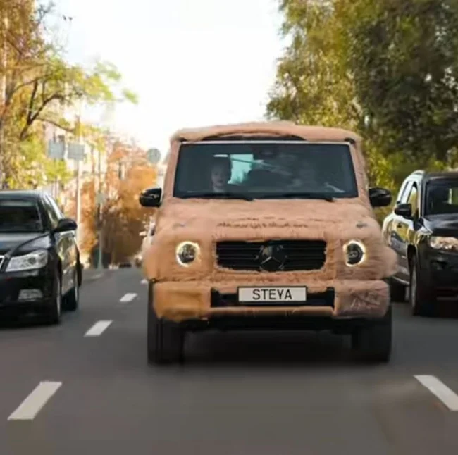 На столичних дорогах з’явився новий «звір» — і це не чергова бронемашина, а… пухнастий Mercedes G-Class. Так, саме пухнастий. Хтось вирішив, що Гелендвагену бракує теплоти, і повністю обшив його штучним хутром.