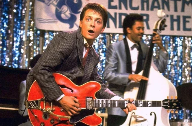 Пам'ятаєте сцену на шкільних танцях, де Марті грає "Johnny B. Goode"? Ця сцена надихнула тисячі гітаристів взяти інструмент. Цікавий факт: оригінал із фільму досі не знайшли — Gibson запустила навіть спеціальний сайт, де збирає зачіпки від людей у всьому світі.