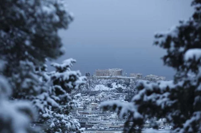 16. Рідкісний кадр - вид на засніжений Афінський Акрополь