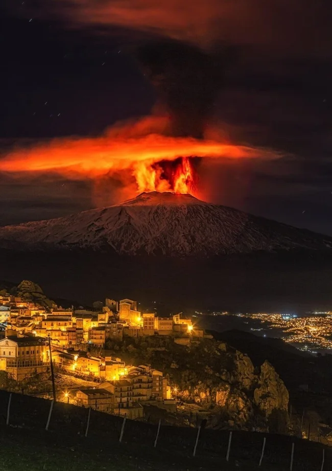 4. Виверження вулкана Етна висвітлює небо над Сицилією, 2021 рік