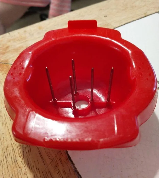 Цей шип потрібен, щоб зробити крихітний отвір курячого яйця, так воно не потріскається під час варіння.