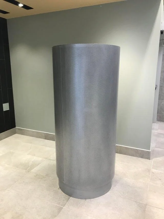 13. Побачила це у себе в університеті. Виглядає так, ніби зроблено з металу та циліндричної форми. У ньому багато маленьких отворів з боків