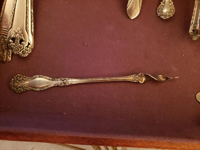 5. Один із предметів із срібного набору. Кінчик як у штопора, але ця штука не надто міцна, щоб використовувати як штопор. Навіщо вона потрібна?