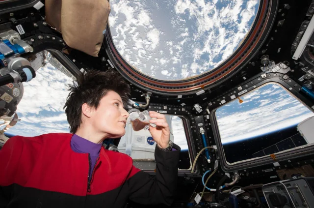 Антигравітаційна чашка була винайдена у NASA і дозволяє пити в космосі. Це відбувається за рахунок комбінування ефектів поверхневого натягу, змочування та геометрії.