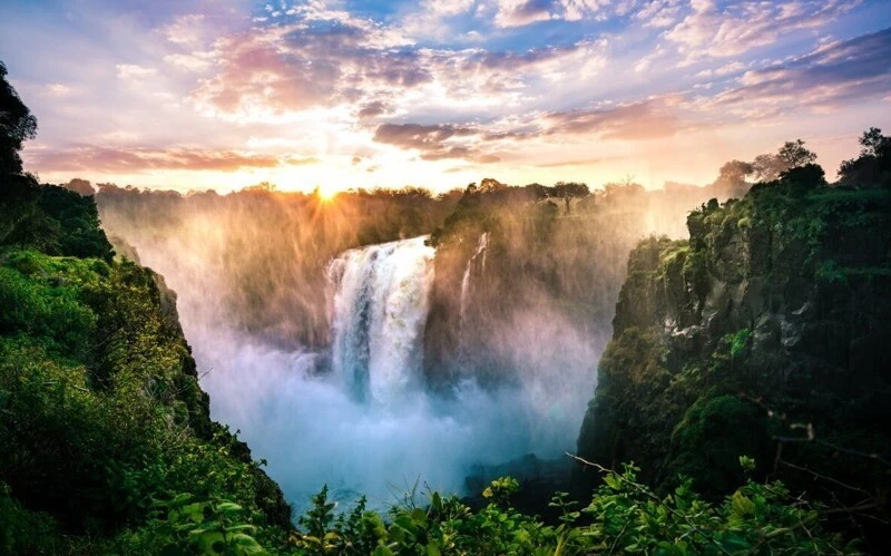 Водоспад Вікторія, що розкинувся на річці Замбезі між Замбією та Зімбабве, внесений до списку Світової спадщини ЮНЕСКО. Його називають «гримаючим димом» і «найбільшою стіною падаючої води». Це захоплююче видовище, яке можна оцінити з різних оглядових майданчиків по обидва боки кордону.