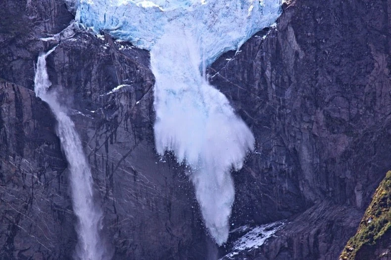 Висячий льодовик Вентискеро в чилійському національному парку Кеулат — це одне з найприголомшливіших природних чудес країни. З урвища струмує водоспад, а прямо над ним нависає язик льодовика. Створюється повна ілюзія, що вода б'є прямо з крижаної товщі. Це неймовірно красиве і неповторне видовище.