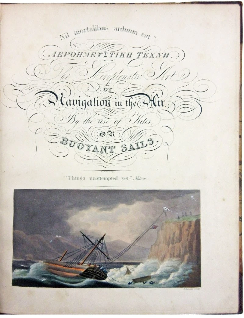 Обкладинка першого видання книги «Аероплейстичне мистецтво, або Навігація в повітрі за допомогою повітряних зміїв або плавучих вітрил» Джорджа Покока