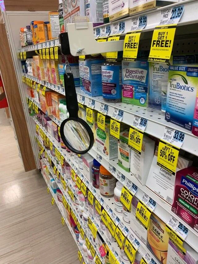 12. У цьому магазині є лупа, яка дозволяє читати дрібний текст на упаковках