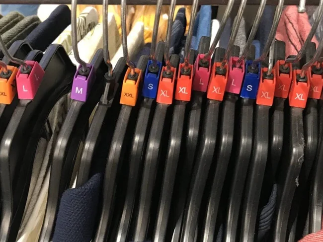 3. Розміри футболок позначені на вішалці, тому не потрібно витрачати час на пошук ярликів