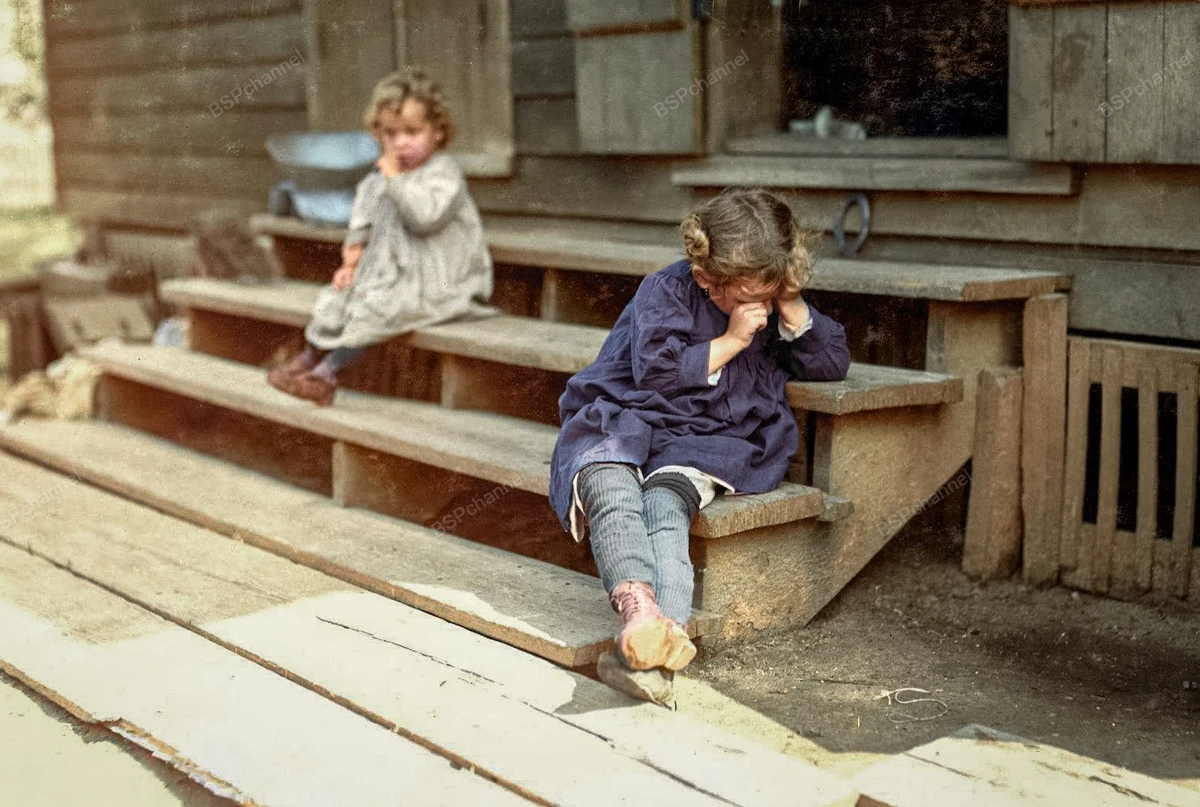 Дівчинка тре очі, сидячи на сходах свого будинку після довгого робочого дня. Білоксі, Міссісіпі, 1911 рік.