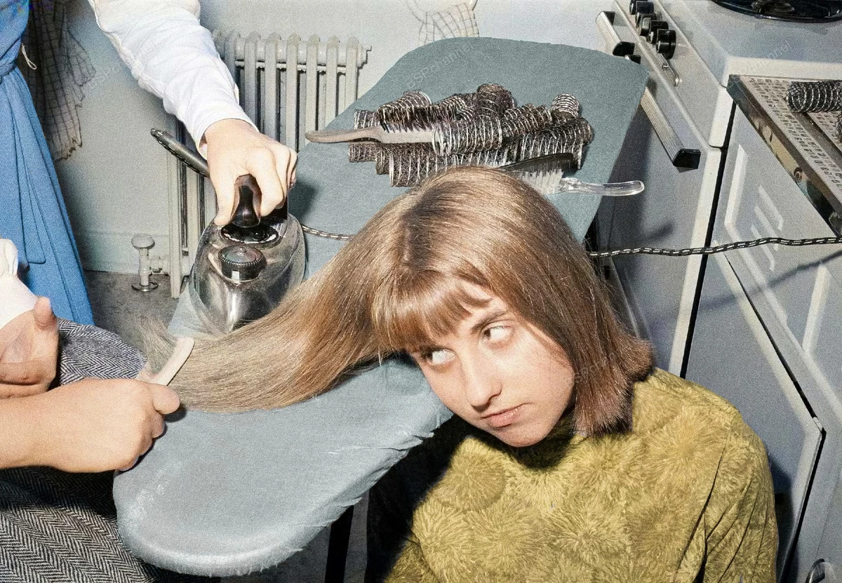 Випрямлення волосся за допомогою праски, 1964 рік.