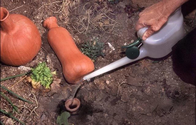 Олла – це глиняний горщик для підземного краплинного поливу. Його закопують у землю поряд із рослинами, заповнюють водою, і вона повільно просочується через пористі стінки прямо до коріння. Цей метод економить до 70% води, запобігає зростанню бур'янів, скорочує трудовитрати та дозволяє надовго залишати рослини без нагляду.