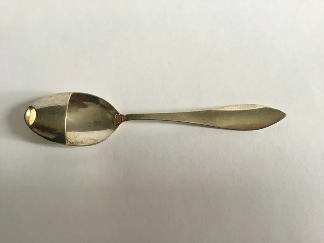 Дитячі ложки для ліків. Була розроблена для полегшення прийому ліків чи годування пацієнтів. Наполовину закрита поверхня запобігає проливанню рідини. Ліки можна було вводити через отвір на кінці, що також допомагало уникнути контакту з язиком пацієнта. Подібні ложки виготовлялися в Європі в період з 1701 по 1900 рік.