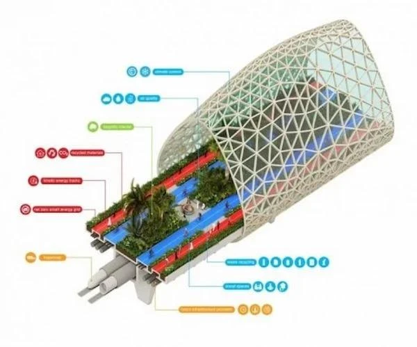 Вся магістраль буде під клімат-контролем: усередині підтримають комфортну температуру та захист від спеки за допомогою комбінації випарного охолодження та інших інженерних рішень. Енергопостачання інфраструктури планують будувати на 100% відновлюваних джерелах, у тому числі на кінетичній енергії від кроків та поїздок користувачів, а для поливу зелені використовувати лише перероблену воду.