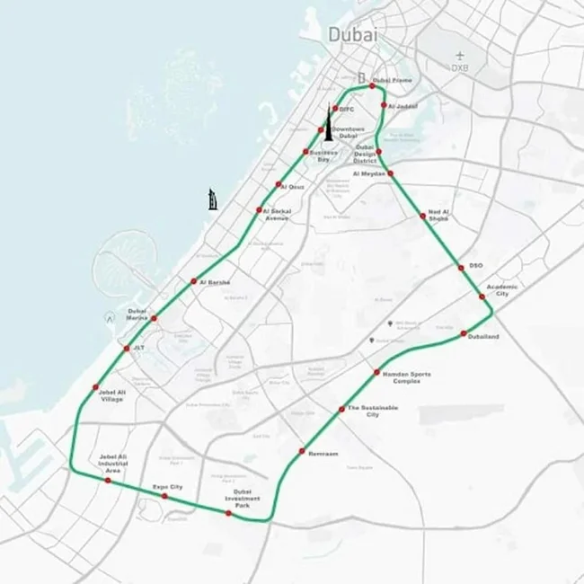Маршрут петлі планують прокласти так, щоб вона проходила через ключові райони Дубая - від Expo City і Dubai Marina/ JLT до Downtown, Meydan, Academic City і кварталів Dubailand і Sustainable City, що розвиваються. За задумом девелопера, The Loop об'єднає понад 3 млн. жителів і зв'яже їх з основними місцями роботи, навчання та дозвілля в межах поїздки на велосипеді або 20-хвилинної прогулянки.