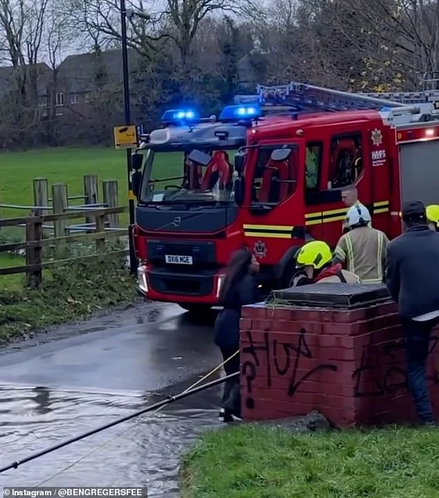 Паніка в калюжі: пожежна команда «рятує» жінку, що застрягла на мілководді (4 фото + 1 відео)