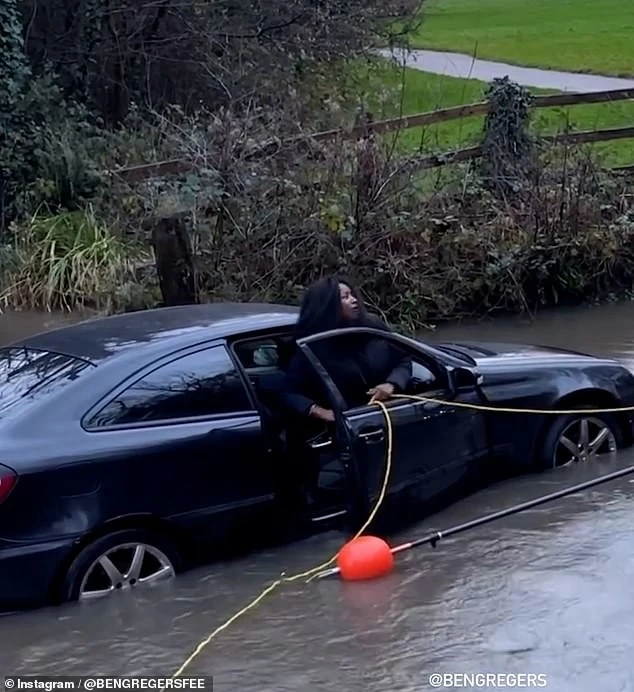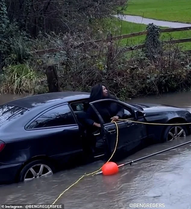 На відео пожежник кидає мотузку автомобілістці, яка застрягла на затопленій дорозі. Користувачі соцмереж висміяли жінку за необхідність порятунку з «калюжі».