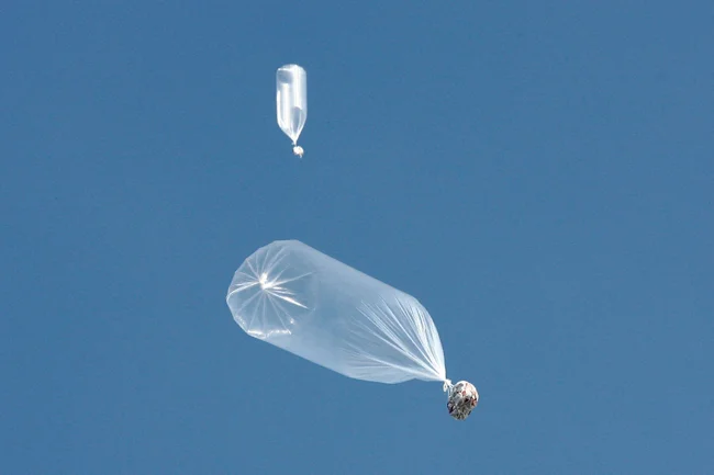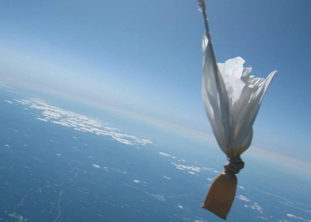 5. Аеростат з GPS-обладнанням та камерою лопнув та падає на землю у вересні 2009 року. Шарик був запущений у повітря студентами Массачусетського технологічного інституту Олівером Єхом та Джастіном Лі. Студентам вдалося запустити кульку на висоту 28 346 метрів. (Oliver Yeh and Justin Lee)