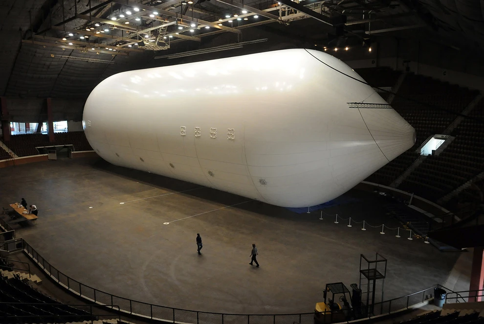 13. Найбільший у світі дирижабль «Bullet 580» стоїть у критій арені Garrett Coliseum у Монтгомері, штат Алабама, 19 травня, після перевірки готовності. Дирижабль випробовуватимуть пізніше, влітку. Він буде навантажений приладом НАСА та Університету Старого Домініону для вимірювання обсягу вологості у ґрунті. Крім дослідницького використання, дирижабль також можна використовувати для військових цілей, безпеки країни та місій з доставки провізії після катастроф. Дирижабль може піднімати вантаж вагою до 907 кг на висоту до 6096 метрів. (AP Photo/Montgomery Advertiser, David Bundy)