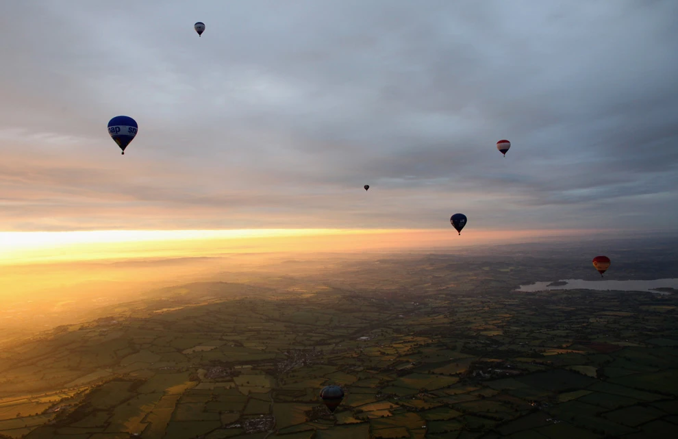 19. Повітряні кулі, які нещодавно злетіли у повітря зі злітно-посадкової смуги Міжнародного аеропорту Брістоля, летять до сонця 12 червня 2009 року. 25 повітряних куль злетіли в повітря о 5 годині ранку, перед відкриттям смуги, в рамках підготовки до Міжнародної фієсти повітряних куль у серпні. (Matt Cardy/Getty Images)