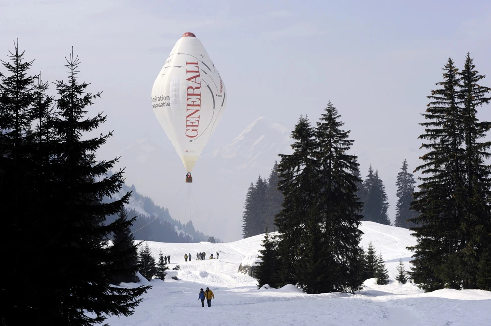 24. Копія повітряної кулі, на якій Жан-Луї Етьєн вирушить у свою наступну пригоду, колишається на вітерці в Карроз д'Арачі, у Французьких Альпах. 62-річний Жан-Луї Етьєн – лікар, дослідник та шукач пригод, який спробував у квітні перетнути Арктику через норвезький острів Шпітцберг та Аляску. (PHILIPPE DESMAZES/AFP/Getty Images)