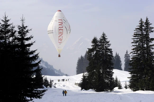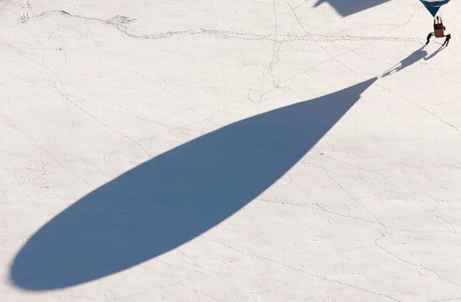 9. Тінь повітряної кулі, що щойно приземлилася, лежить на снігу під час тижня повітряних куль у Шато д’О, Швейцарія, 23 січня. Понад 80 куль із 15 країн взяли участь у відомому заході у швейцарському гірськолижному курорті, відомому своїми ідеальними погодними умовами завдяки винятковому мікроклімату. (REUTERS/Valentin Flauraud)