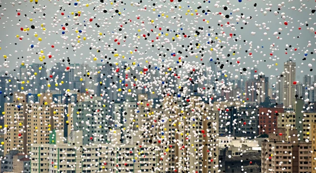 2. Повітряні кулі з прикріпленими посланнями, випущені палестинськими дітьми, летять у небо під час заходу, організованого ЮНІСЕФ на честь 20-річчя Конвенції про права дитини у Рамаллаху 20 листопада 2009 року. (AP Photo/Muhammed Muheisen)