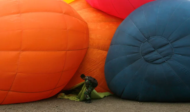 17. Солдат готує повітряну кулю під час Перших Індонезійських перегонів на повітряних кулях у Сентулі, Богор, Західний берег річки Йордан, 26 березня. (REUTERS/Supri)