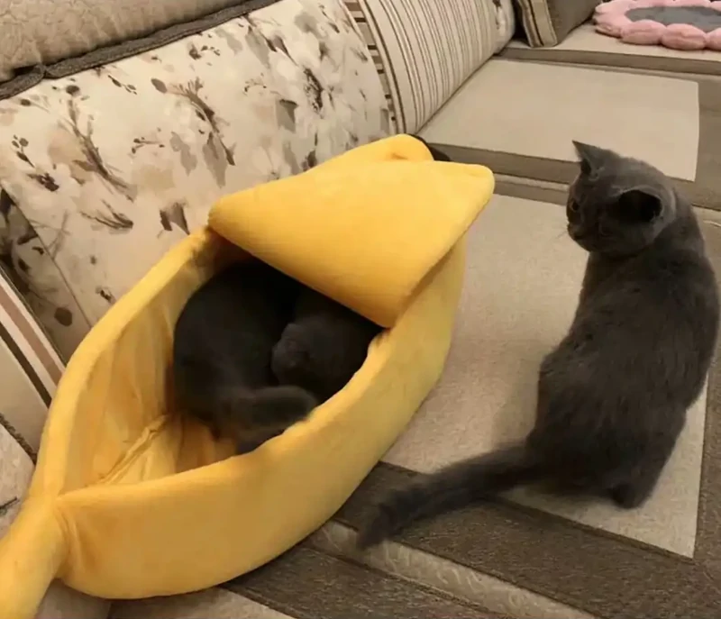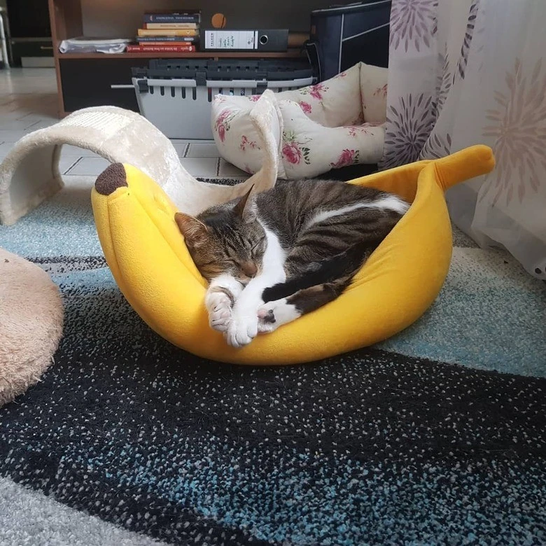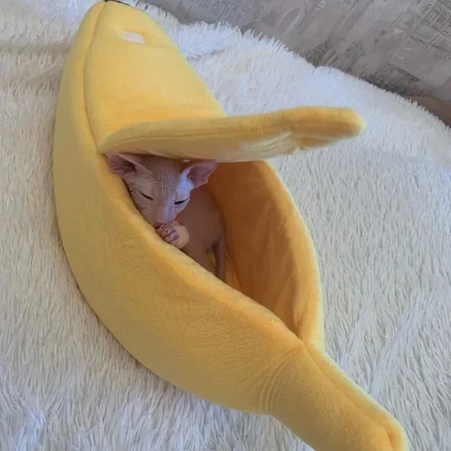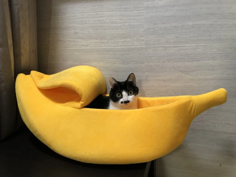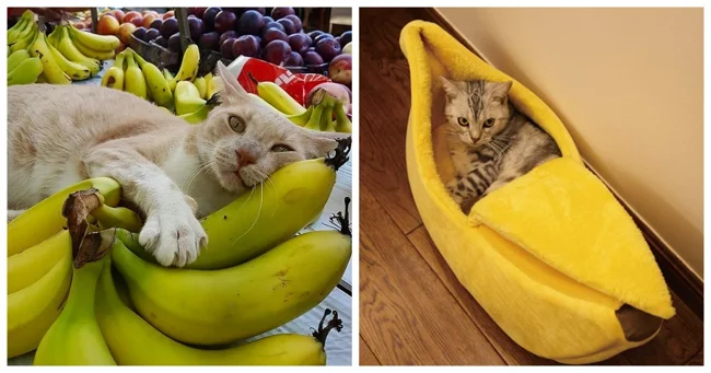 Маркетологи вже знайшли відповідь на це питання і вигадали соковиту і дуже затишну лежанку у формі банана. Ця фотопідбірка доводить, що такі лежанки являють собою не просто примхи дизайну, а справжнє кохання наших вусатих. Дивіться, як затишно вони розміщуються у ніжній плюшевій шкірці, солодко сплять у вигині і важливо ховаються усередині плюшевого фрукта. Чи готові побачити ідеальну парочку – котан та його банан?