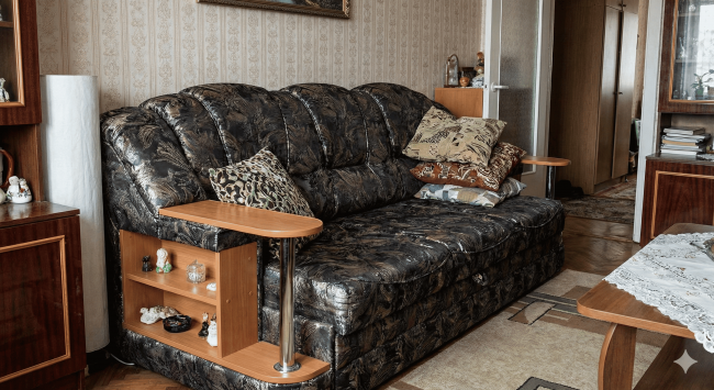 Помилка №3. «Функціональний» несмак. Дерев'яні накладки на підлокітниках, вбудовані полички, бари, хромовані труби — це застарілі елементи, які створюють візуальний шум і збирають пил.