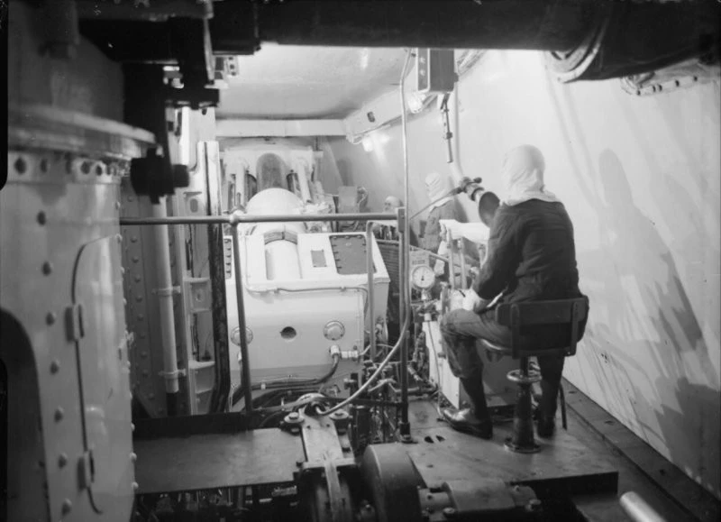 Нутрощі однієї з веж головного калібру HMS King George V зі знаряддям BL 14″/45 Mark VII