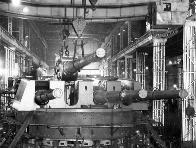 Складання чотириствольної вежі з 356-мм гарматами для лінкорів типу King George V на заводі Vickers-Armstrong у місті Ньюкасл-апон-Тайн, 30 квітня 1940 року