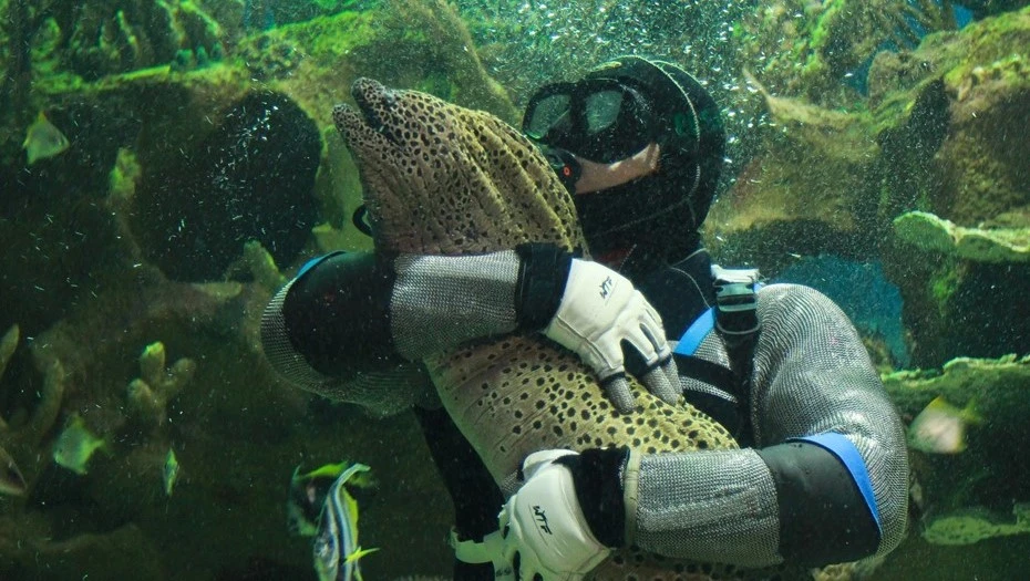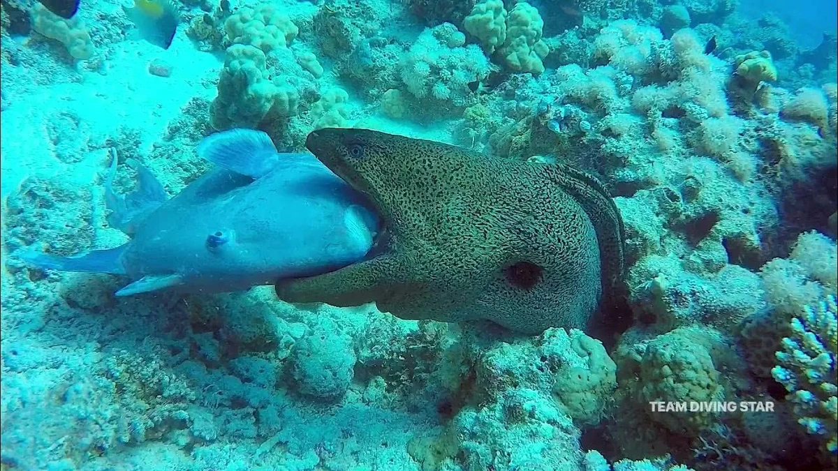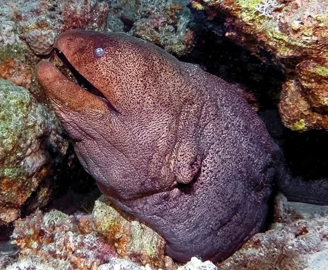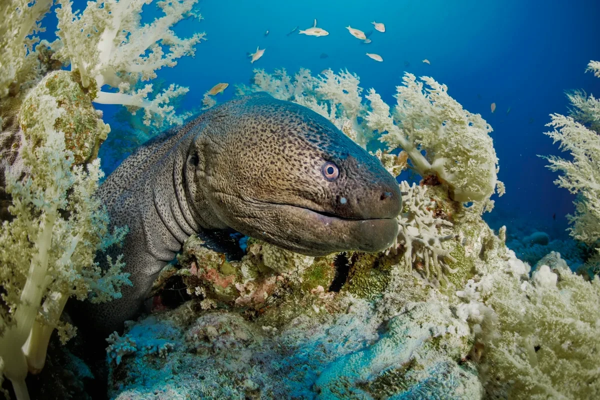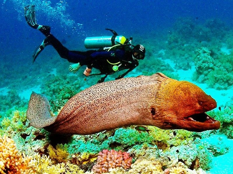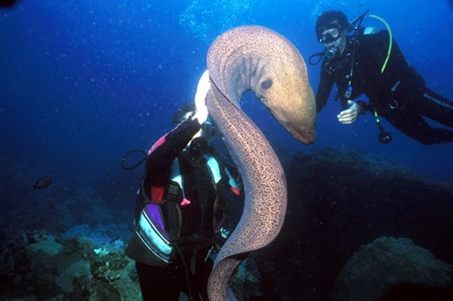 Мурена – це 3 метри та 30-50 кіло ненависті до всього навколо. Гігантський рибозмій - найтовстіший з усіх муренових. Але не ведіть на вантажні габарити. Ця махіна у своїй невблаганній люті блискавична, а в спритності не поступається кішкам.