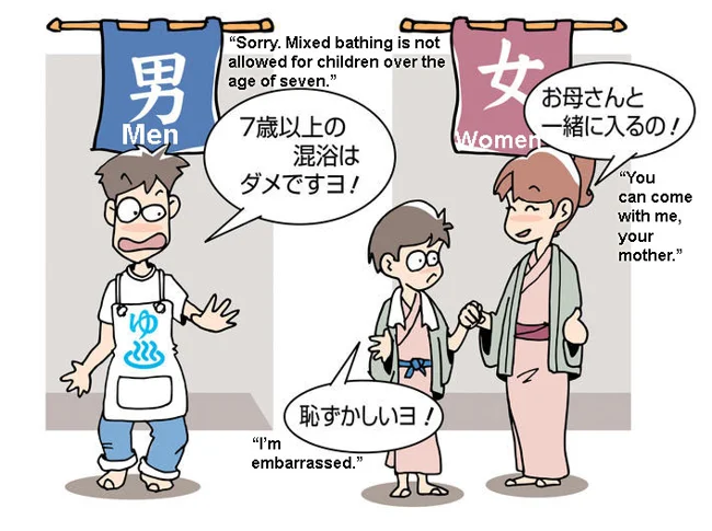 Це давня проблема країни, через яку ніяк не можуть домовитися. У кожному місті та префектурі є змішані купальні, куди мама може привести свого сина. Ось тільки правила входу в такі лазні... часом дуже різні.
