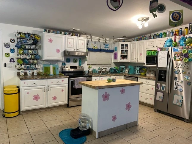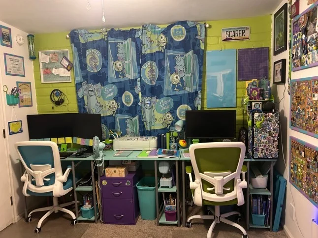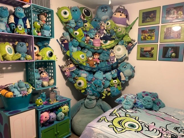 З того часу, як у 2001 році на екрани вийшов перший фільм «Корпорація монстрів», Лора Салліван почала колекціонувати сувеніри. І це захоплення поступово перетворилося на справжню пристрасть. Сьогодні будинок 36-річного фармацевта з Тусона, США оформлений у стилі франшизи — від меблів до квітів та декору. Єдиний виняток - господарська спальня, яка залишилася єдиною кімнатою, вільною від монстрів.