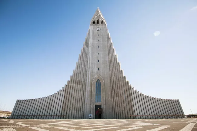 Халлгримскіркья в Рейк'явіку — лютеранська церква, яка стала найвідомішим символом столиці Ісландії. Її унікальний дизайн, створений архітектором Гудйоуном Самуельссоном, навіяний базальтовими колонами та формами ісландських ландшафтів, нагадуючи гігантський сталагміт або скелю, що злітає в небо. Будівництво цієї монументальної будівлі заввишки 74 метри велося з 1945 по 1986 рік.