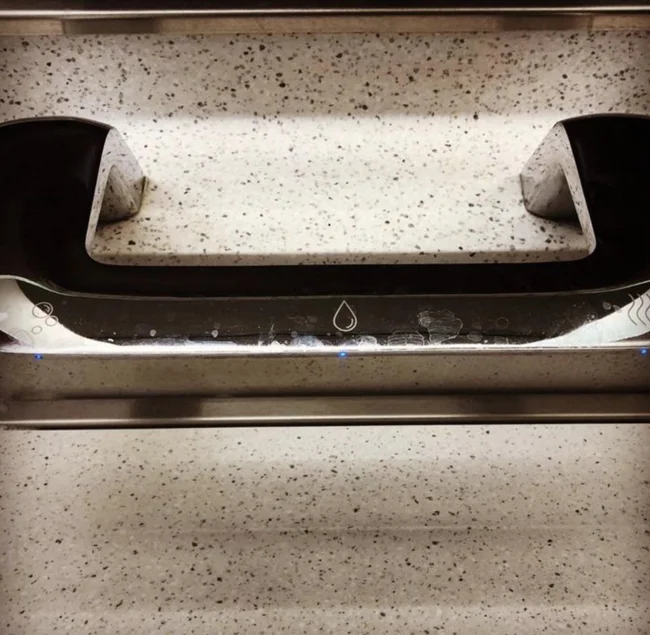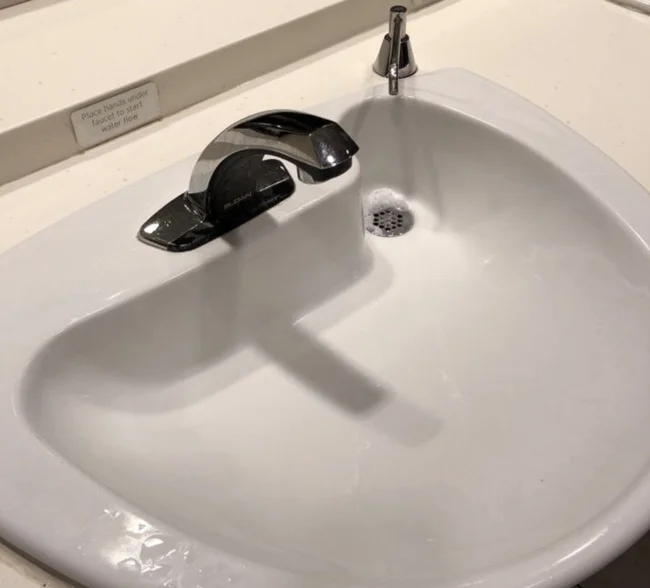 Щоб не залишалося жодних розлучень, дизайнери цієї раковини зробили злив під дозатором мила.
