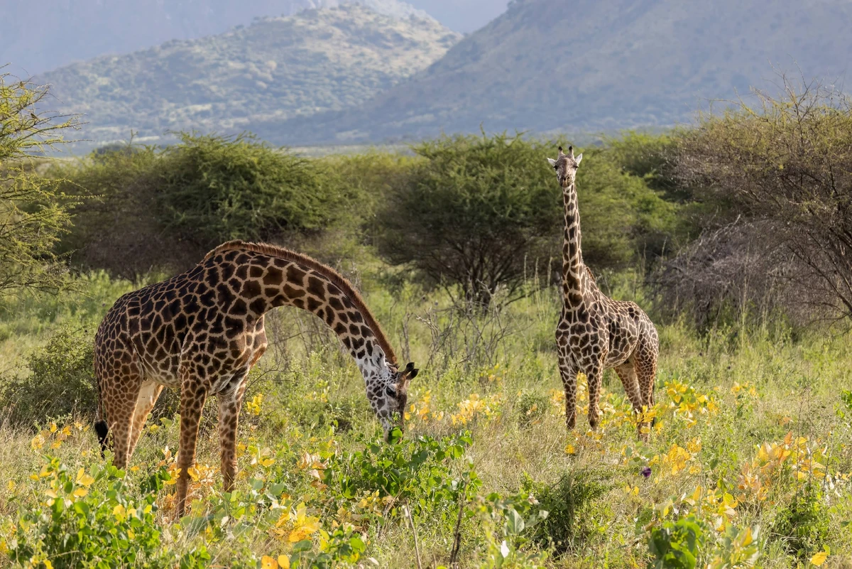 Коли в тебе шия на два метри, але салат все одно внизу. Нацпарк Мкомазі, Танзанія, 2025 р. Автор: Варвара Дронова.